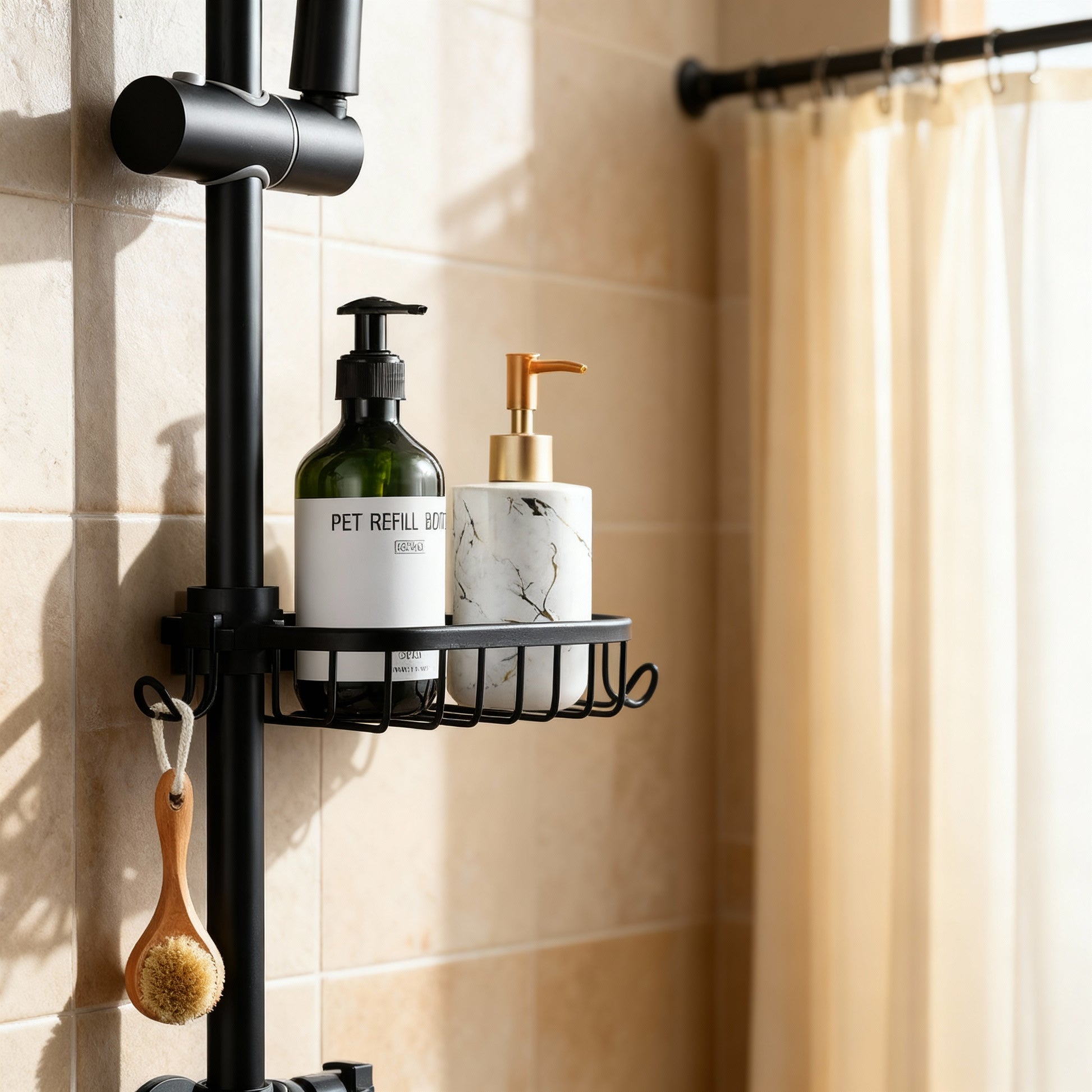 Einfache Installation: Befestigung ohne Werkzeug an runden Duschstangen oder Rohren.