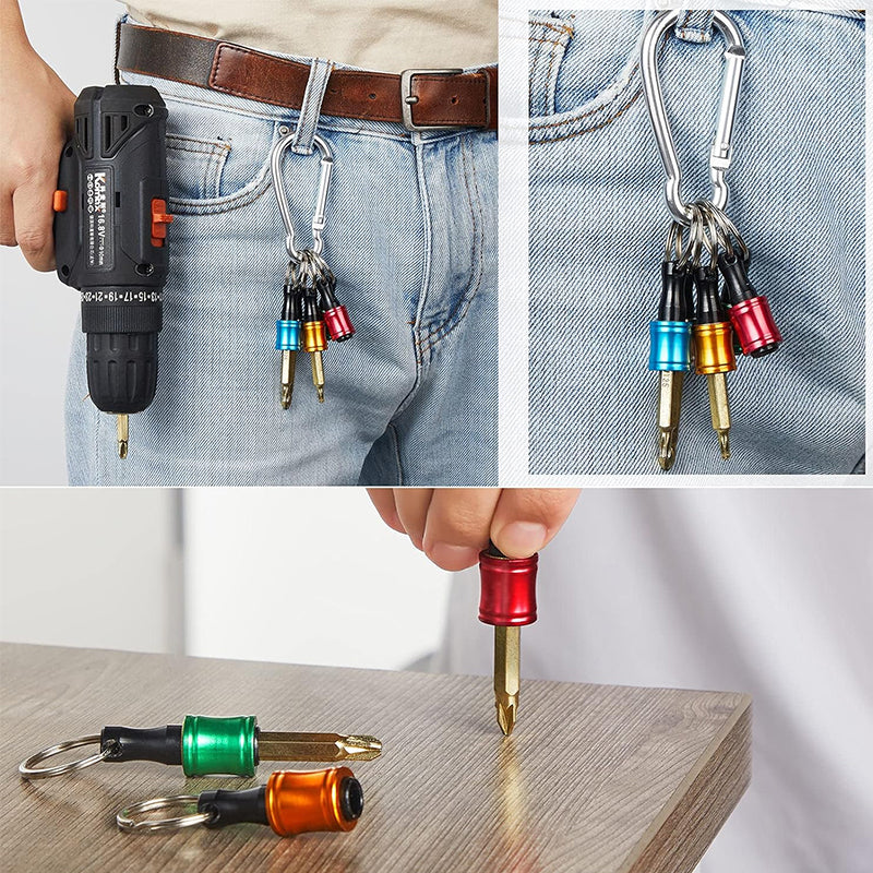 • Problemloses Verwalten: Nie wieder den passenden Bohrer suchen! Dieser Karabiner enthält sechs präzise gefertigte Bithalter, die mit einem schnellen Befestigungssystem ausgestattet sind. Egal, ob Sie beruflich oder für ein Heimwerkerprojekt tätig sind, Ihre Bohrer bleiben stets ordentlich und griffbereit.