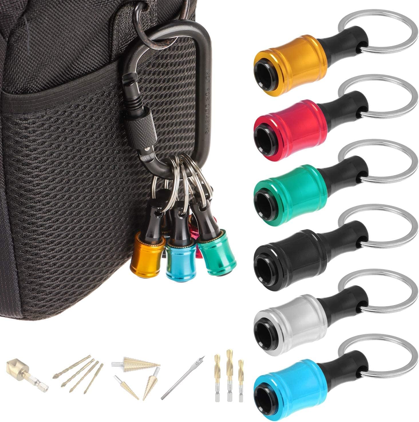 🛠️ Einfache Organisation: Nie wieder das Suchen nach dem passenden Bohrer! Entdecken Sie sechs präzise gefertigte Halterungen in diesem Karabiner, die jeweils mit einem innovativen Schnellverschlussmechanismus versehen sind.
