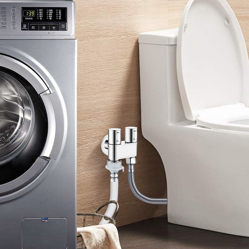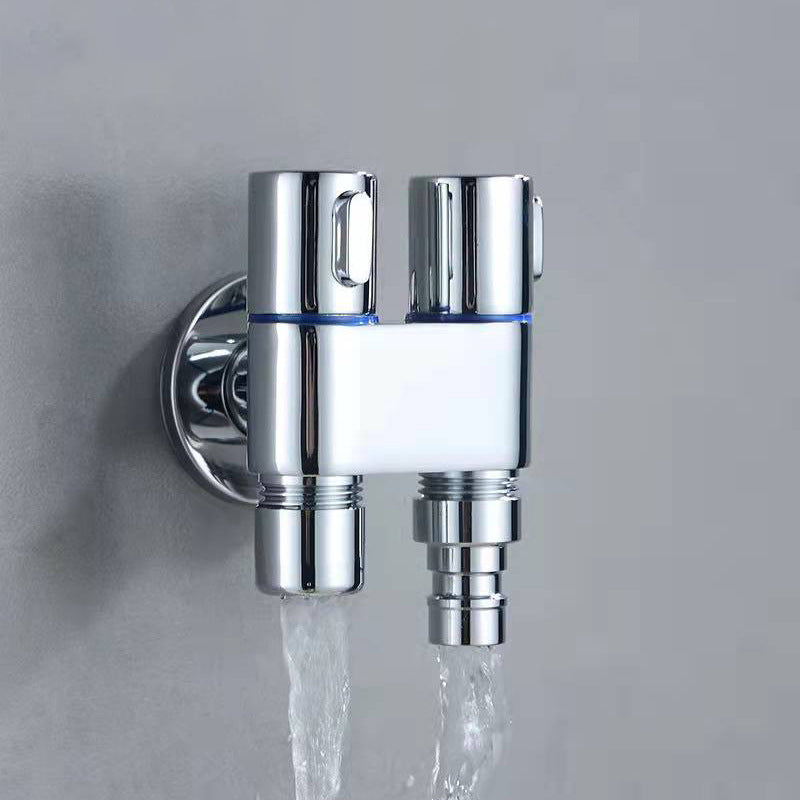 Winkel-Wasserabsperrventile mit zwei Auslässen. Ermöglichen das Absperren des Wassers zu einer Quelle, sodass weiterhin Wasser zu einer anderen Quelle zugeführt werden kann.