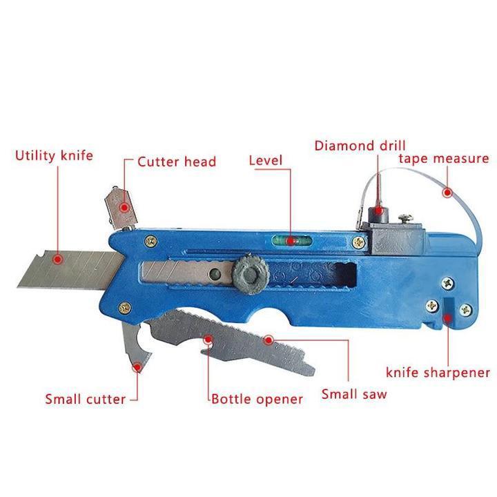 Warum sollten Sie teure Glasschneider verwenden, wenn Sie mit diesem Multifunktionalen Glas- & Fliesenschneider die perfekte Lösung haben können? Er schneidet durch verschiedene Materialien wie Glas, Fliesen, Ziegel und Teppiche. Zusätzlich kann er auch Fliesen stanzen, Messer schärfen, Flaschen öffnen, Holz schneiden, als Kunstmesser fungieren und Gewinde sowie Winkel schneiden. Dieses innovative Werkzeug ist ein handliches Taschenwerkzeug mit verschiedenen Schneidfuktionsmöglichkeiten.