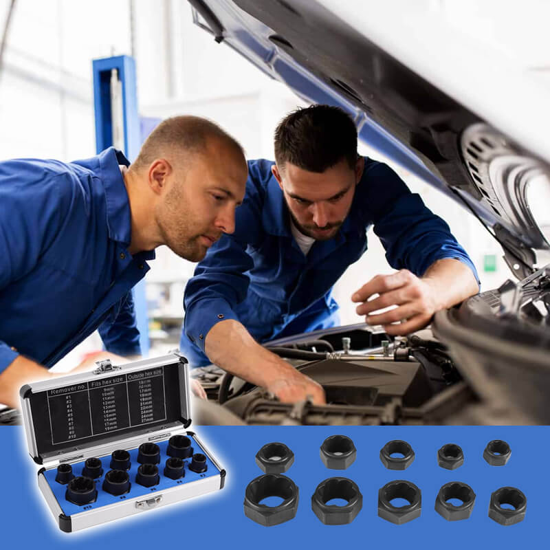 Im Vergleich zum alten Auszieher benötigt das neue Schraubenauszieher-Set keinen Nuss-Einsatz auf dem Sechskantkopf, bevor der Schraubenschlüssel angeschlossen wird. Es ist bequemer und schneller. Standard 3/8-Zoll-Antrieb, wodurch der Schraubenauszieher mit Handwerkzeugen, Elektrowerkzeugen und Druckluftwerkzeugen kompatibel ist.