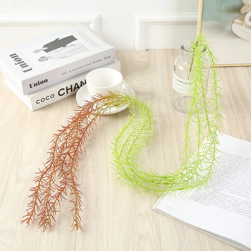 Diese künstliche Luftgrasrebe wurde kreiert, um Ihren Wohnraum mit ihrem realistisch anmutenden Design und ihrer Flexibilität zu bereichern. Ihr langes und sanftes Aussehen macht sie ideal für hängende Dekorationen sowohl in Innen- als auch Außenbereichen. Die Rebe benötigt keinerlei Pflege, was sie zu einer praktischen Wahl für anhaltende Nutzung macht. Ob für besondere Anlässe wie Hochzeiten oder Feiertage oder um einfach Ihr tägliches Wohnambiente zu bereichern, diese Rebe eröffnet unbegrenzte Möglichkeiten, ohne dass Sie sich um Verwelken oder Pflege sorgen müssen.