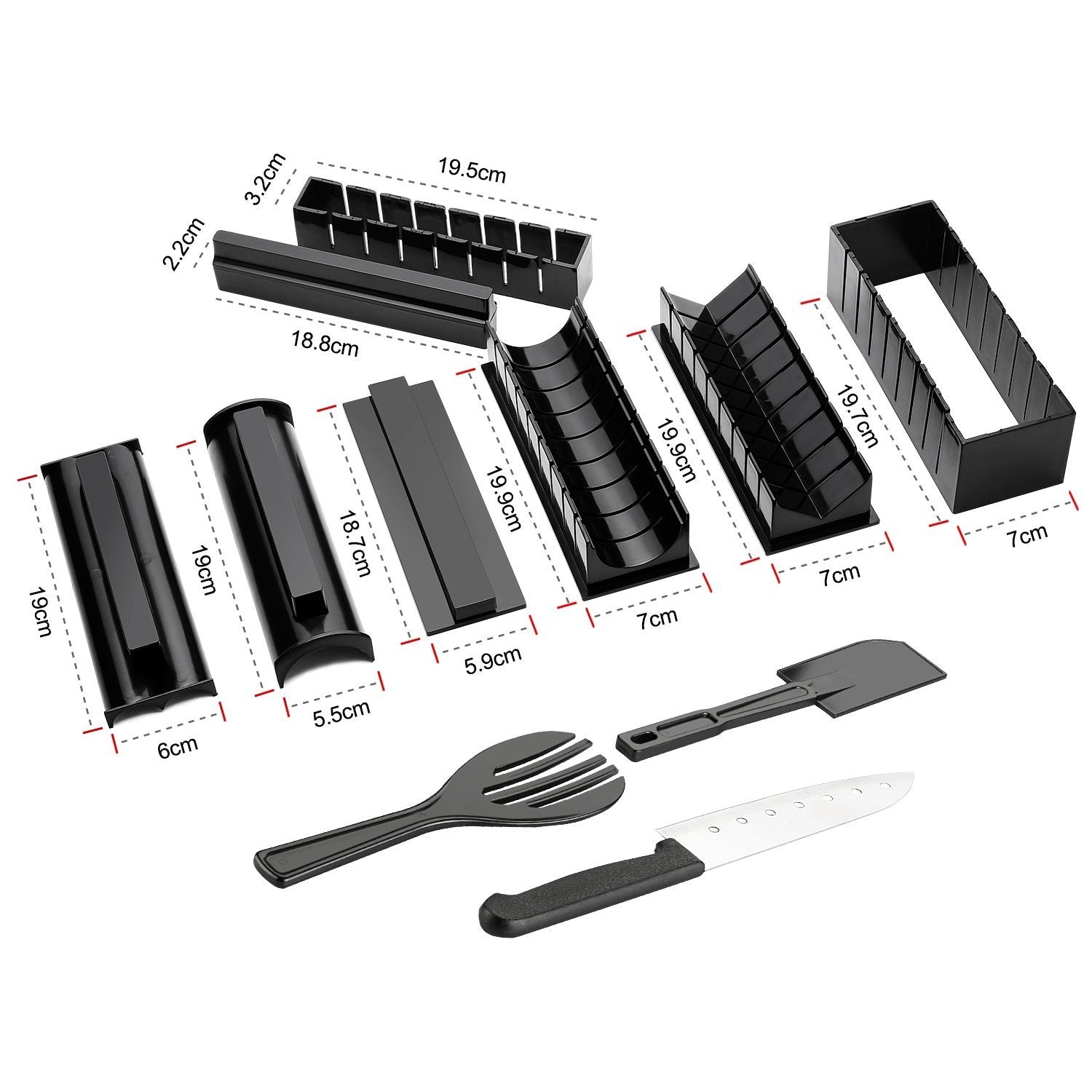 • 11-teiliges Sushi-Kit: Kreieren Sie alle erdenklichen Formen: Herz, Dreieck, rund, quadratisch... So gelingt es Ihnen, Sushi in verschiedenen Größen und Variationen im Handumdrehen zuzubereiten.