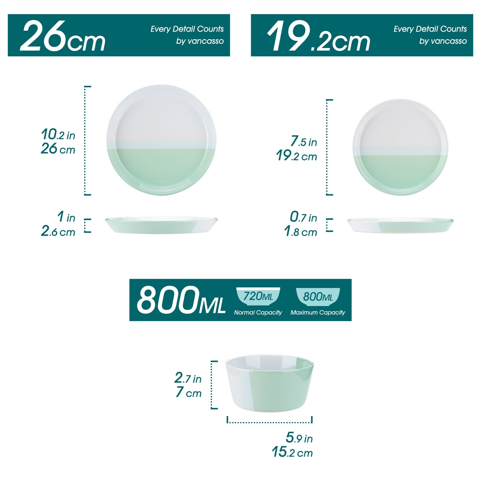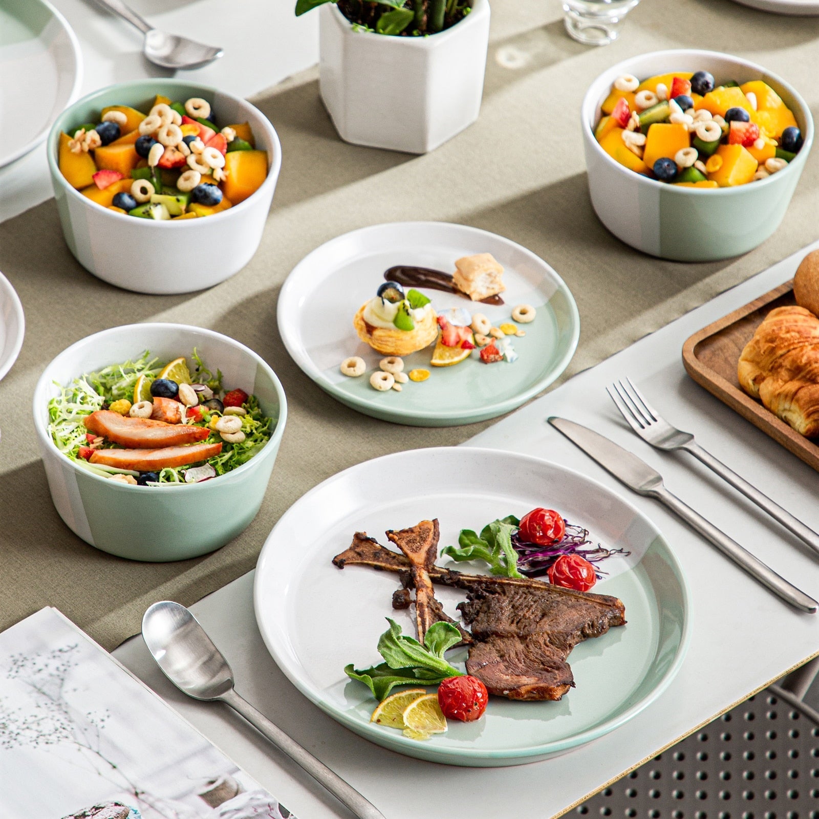 • PACK von 12/24/36 - Das 12/24/36-teilige Set umfasst einen 10,2-Zoll Esssteller, einen 7,5 Zoll Dessertteller und eine 5,9-Zoll Schüssel, Servier für 4/8/12 Personen
