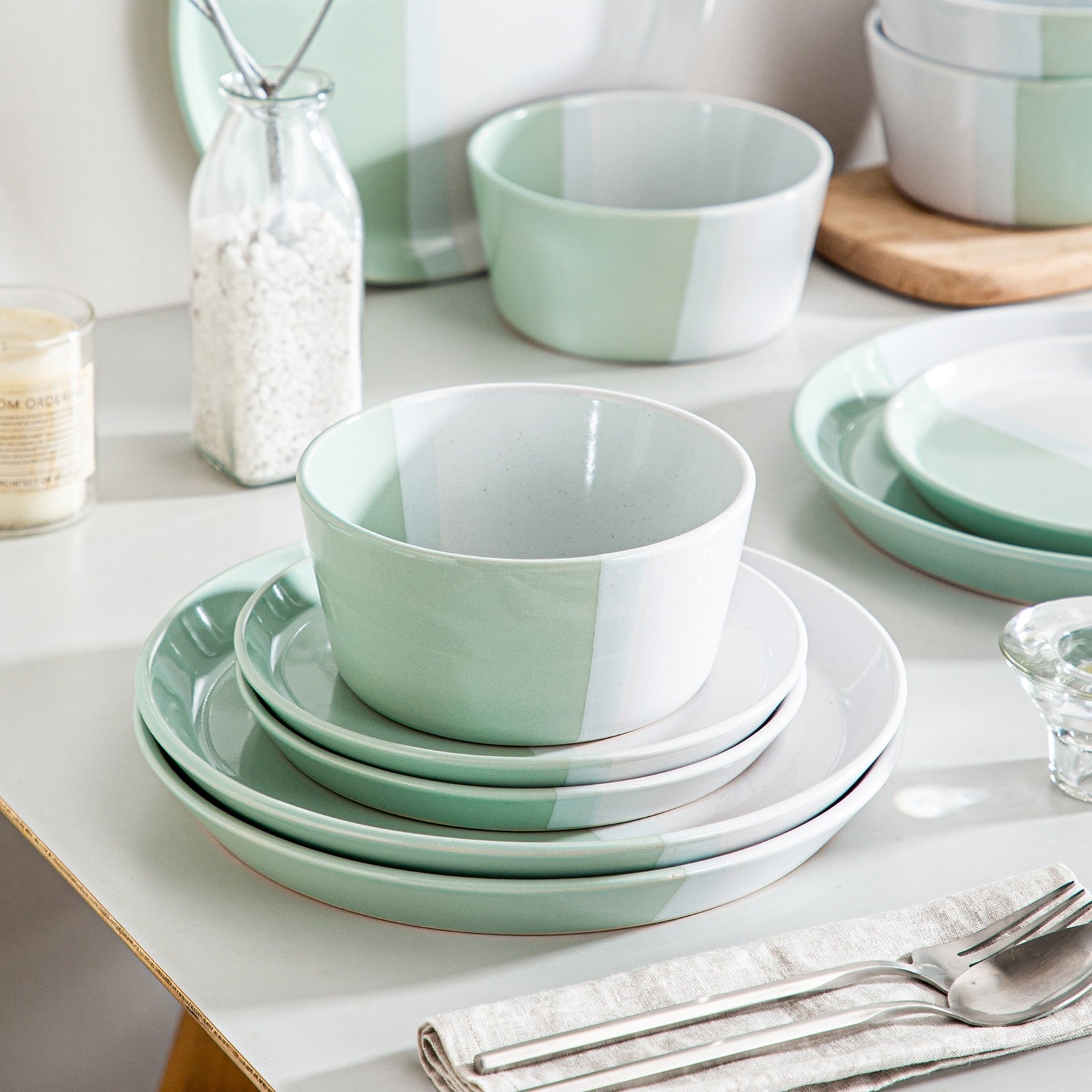 Entdecken Sie die exquisite Embossed Stoneware Geschirrset von Kitchen Group mit Ess- und Dessertteller, Suppenschale und Becher. Es ist in 12, 24 oder 36 Teilen erhältlich. Dieses umfassende Set enthält Essteller, Dessertteller und Suppenschalen und bietet alles, was Sie benötigen, um eine stilvolle und koordinierte Tischdekoration zu schaffen. Hergestellt aus hochwertigem Steinzeug, verfügt jedes Stück in diesem Set über ein exquisit geprägtes Design, das Ihrer dining Erfahrung einen Hauch von Raffinesse verleiht.