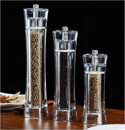 Die Pfeffermühle und der Grinder von Huang Acrylic heben sich stark von vielen traditionellen Modellen aus Kunststoff und Glas ab. Der Grinder zerkleinert Pfeffer in feine Partikel, anstatt ihn einfach zu quetschen, was den Geschmack intensiviert. Das dreieckige Design sorgt für eine benutzerfreundliche Handhabung und fügt sich harmonisch in jede Kücheneinrichtung ein. Das verwendete Acrylmaterial nimmt keine Gerüche auf, sodass es mühelos mit verschiedenen Gewürzen kombiniert werden kann. Ideal für den Gourmetkoch in Ihrem Zuhause – erwerben Sie es als Set. Huang Acrylic ist ein in den USA ansässiges Unternehmen, das seit 1978 großen Wert auf Qualität, Design und Stil für anspruchsvolle Kunden legt.