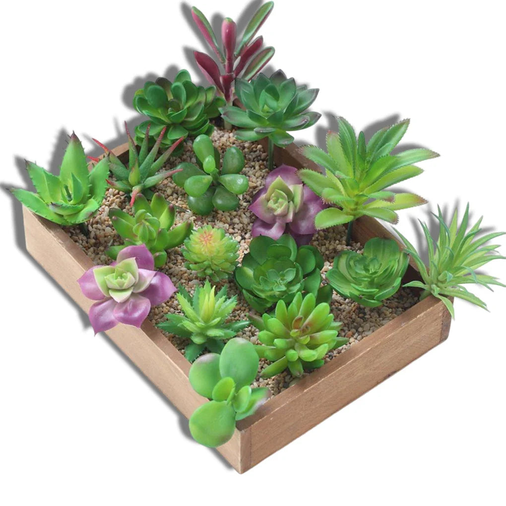 Verleihen Sie Ihrem Raum mit diesem Set von 12 mini künstlichen Sukkulenten ein lebendiges, pflegefreies Ambiente. Diese geschmackvoll gestalteten, farblich gemischten, ungetopften Sukkulenten sind ideal, um Ihrem Garten, Feiern, Büros und mehr eine natürliche Note zu geben. Gefertigt aus robustem Kunststoff, erfordern diese authentisch aussehenden Pflanzen keine Pflege und bleiben das ganze Jahr über frisch.