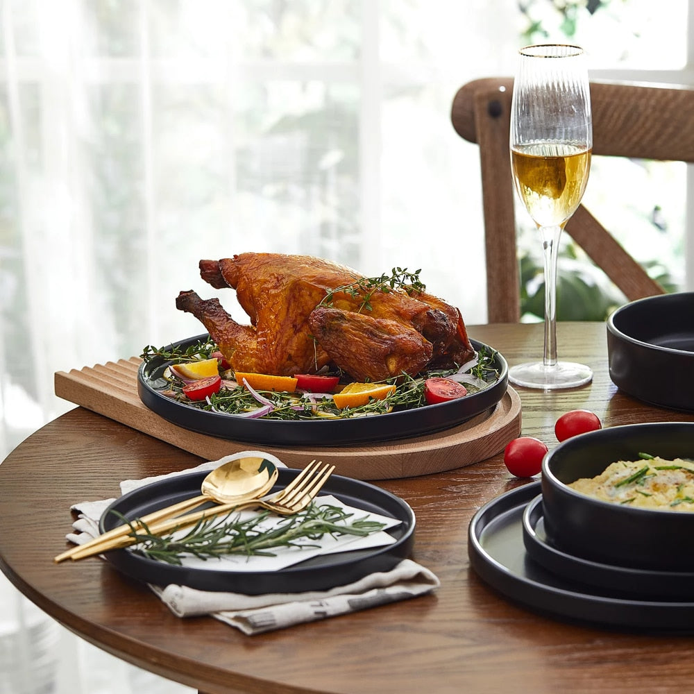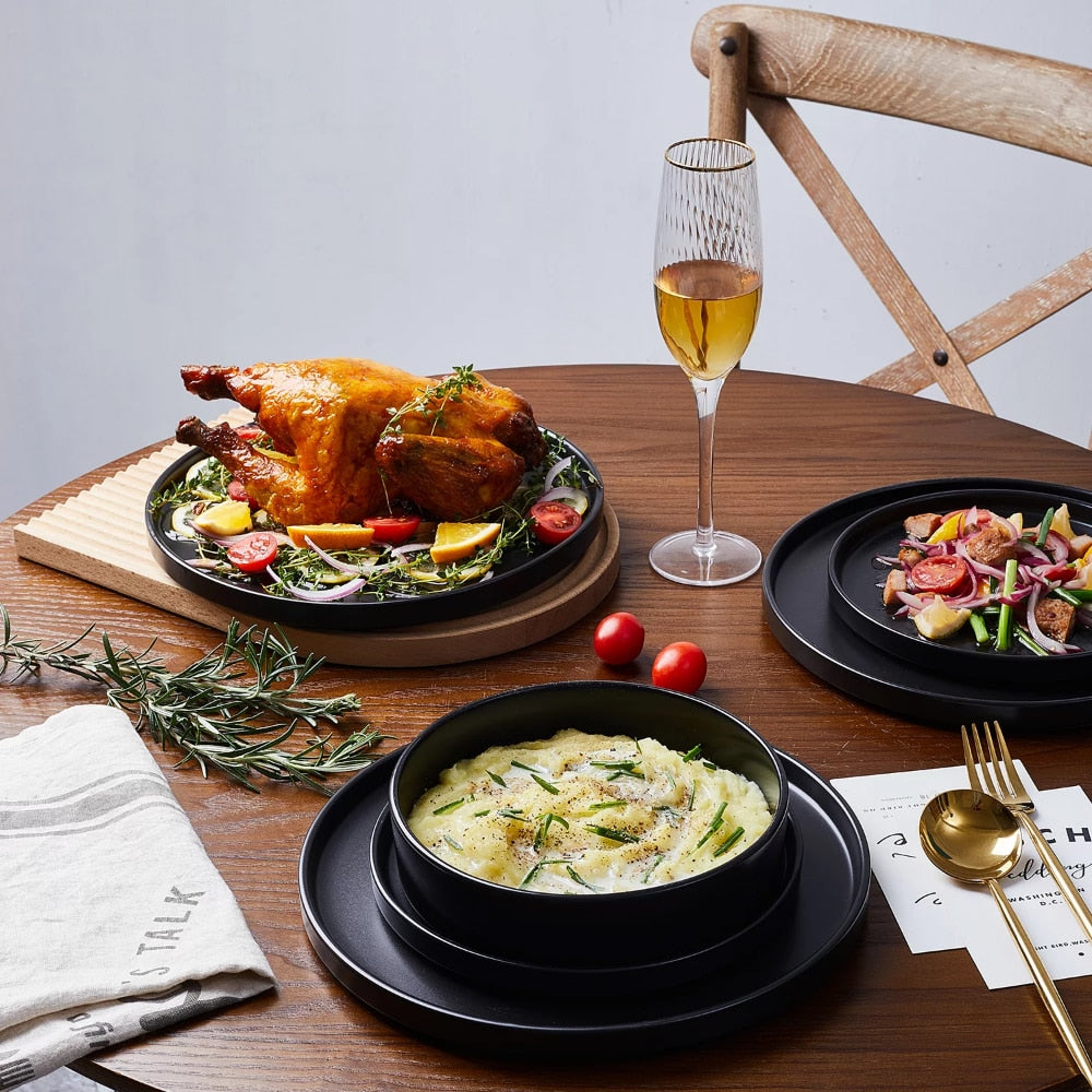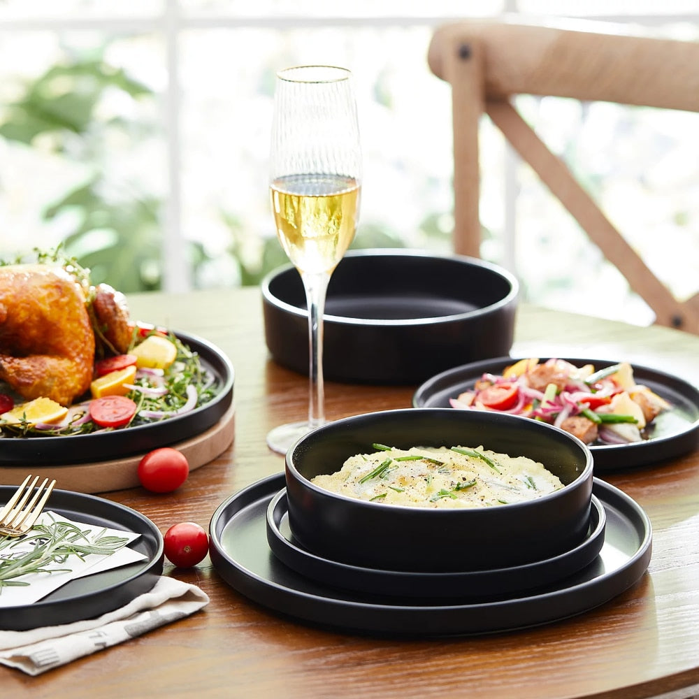 1*12-teiliges Steinzeug rundes Geschirrset schwarzes Geschirrset