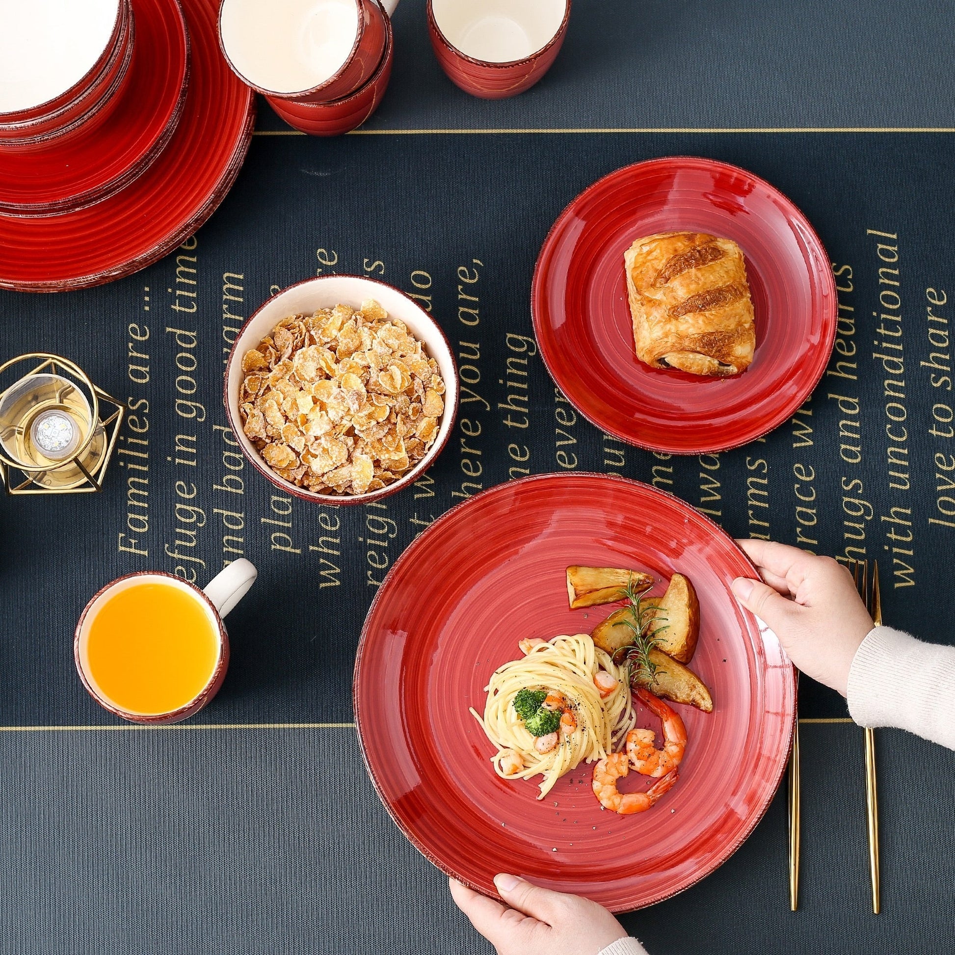 Das Essgeschirr-Set reicht aus, um eine Vielzahl von Speisen unterzubringen, mit verschiedenen Farbmodellen, um verschiedene Essbedürfnisse zu erfüllen, perfekt abgestimmt auf das tägliche Leben der Familie. Geeignet für jedes Familienfest, Restaurant, formelles Bankett Hergestellt aus feinem Steinzeug, handbemalt, edles und schickes Design, passend zu jedem Wohnstil, sodass diese Teller für jeden Anlass geeignet sind, vom entspannten Frühstück bis zum festlichen Abendessen. Diese multifunktionalen Essplatten ergänzen jede Küche und jedes Restaurant-Style. Lieferumfang: 1*16-teiliges Porzellan-Essgeschirr-Set im Vintage-Look