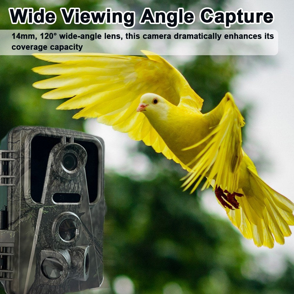 Entdecken Sie die Schönheit der Natur mit unserer Wildkamera, die mit einem 14-mm, 120° Weitwinkelobjektiv ausgestattet ist, das speziell entwickelt wurde, um beeindruckende tierische Bewegungen und natürliche Szenen festzuhalten. Ausgestattet mit 42 Stück 940nm Infrarot-LEDs ermöglicht sie eine hervorragende Nachtsicht von bis zu 15-20 Metern, was sie ideal für den Einsatz bei Regenwetter oder kompletter Dunkelheit macht. Dank der PIR-Sensortechnologie und einer Blitzgeschwindigkeit von nur 0,8 Sekunden wird jede Bewegung präzise erfasst, wodurch sie sich perfekt für die Tierbeobachtung, die Überwachung von Feldern und andere Outdoor-Aktivitäten eignet.