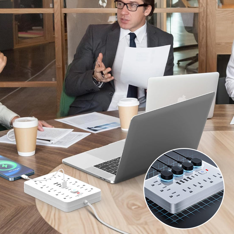 • 【11 Steckdosen】: Beinhaltet 11 überspannungsgeschützte Steckdosen, die für eine sichere und effektive Verteilung der Energie auf all Ihre elektronischen Geräte sorgen.