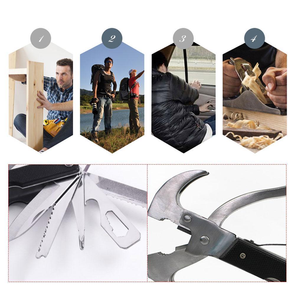 Dieses Werkzeug ist das 18-in-1-Multifunktionswerkzeug, das robuster und intelligenter ist als die anderen. Diese unglaubliche, vielseitige Taschenwerkzeugbox wurde entwickelt, um sicherzustellen, dass jede eventualität, die eine Reparatur erfordert, in ihrem Design berücksichtigt wurde. Vom Sägen, Schrauben, Hämmern und sogar elektrischen Arbeiten – das Werkzeug wird jeder Herausforderung gerecht, egal wo du es benötigst.