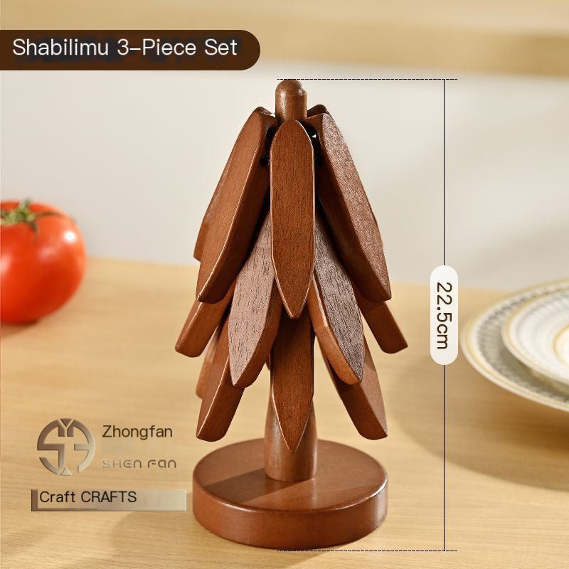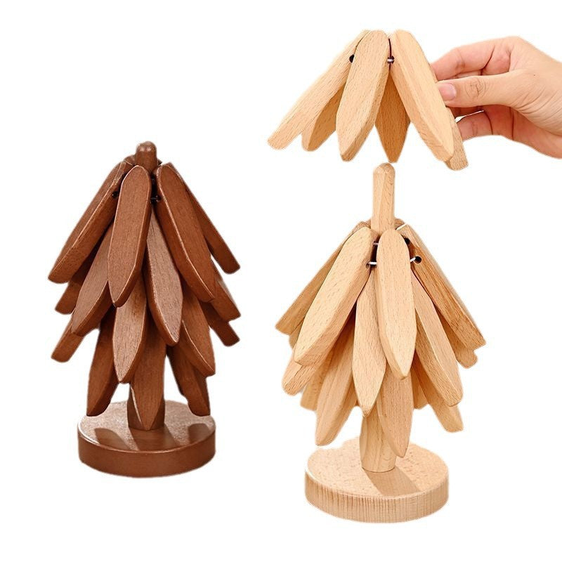 Frendorf | 1Set Holzuntersetzer für heiße Gerichte Faltbarer Baumform Tischmatte Halter Wärmeisoliertes Pad Set Untersetzer für Töpfe