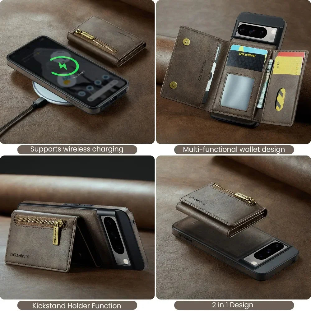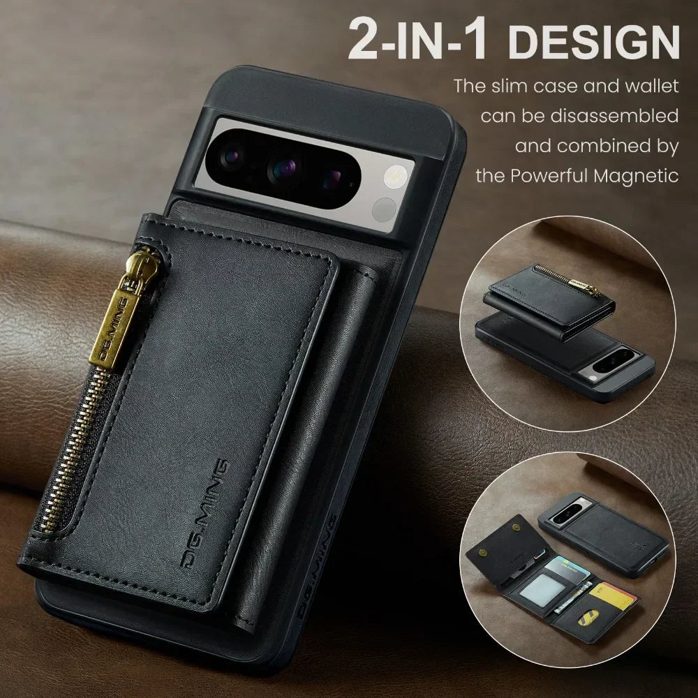 Frendorf | 2 In 1 Abnehmbares Magnetisches Leder Reißverschluss Geldbörse Etui Mit Kartenfach Für Google Pixel 8