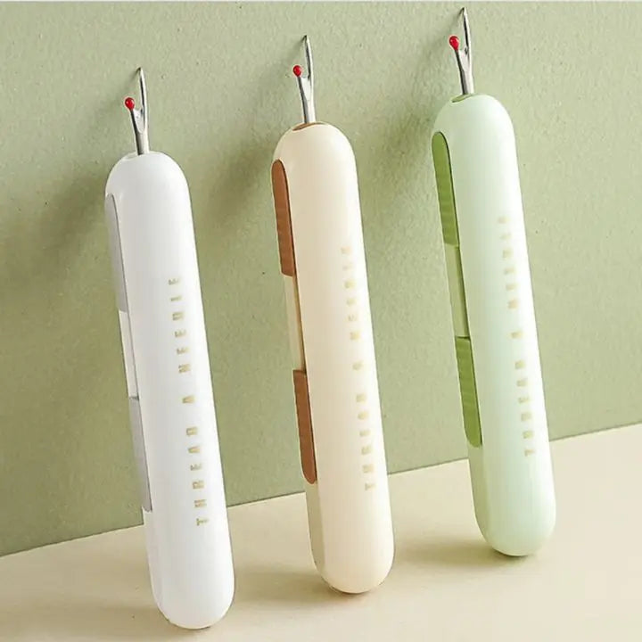 Dieses geniale 2-in-1-Nähgerät kombiniert einen Nadeleinfädler und Nahttrenner in einem handlichen, tragbaren Format. Perfekt für Anfänger, erfahrene Näher*innen und alle, die unterwegs schnell und effizient arbeiten möchten.