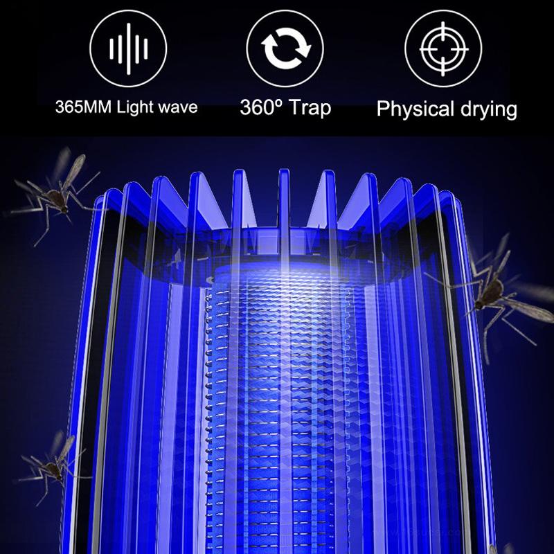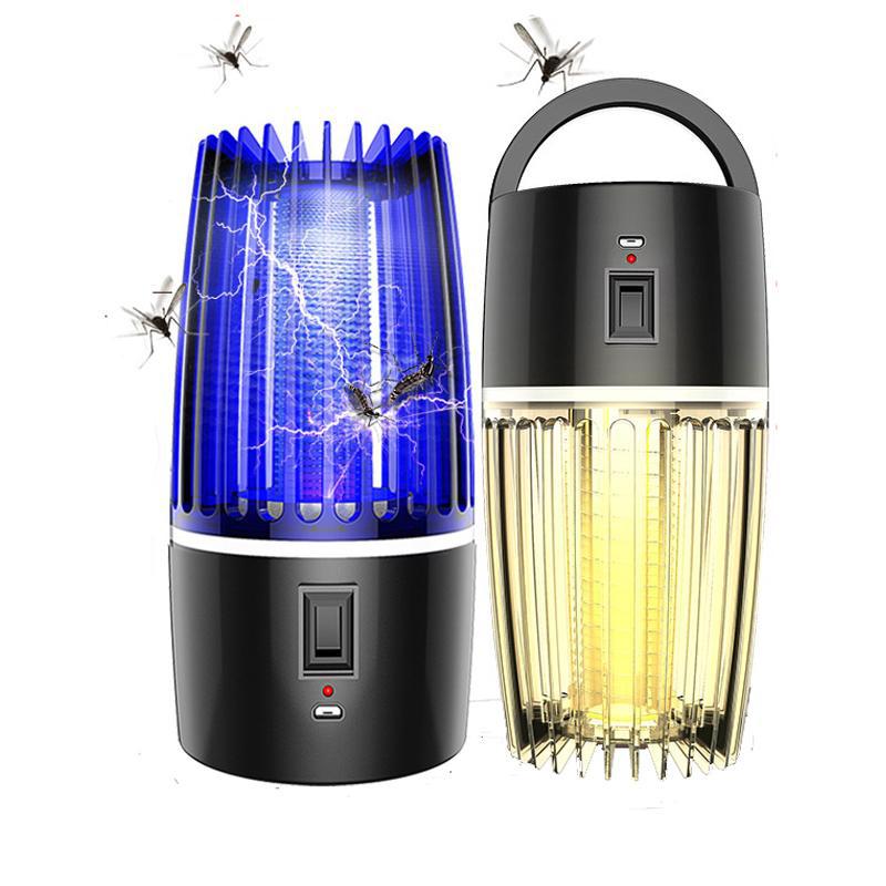 Der 2 in 1 Mückenvernichter fungiert auch als Campinglaterne, ist USB-aufladbar und vollständig tragbar.