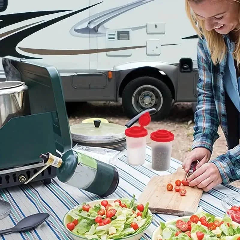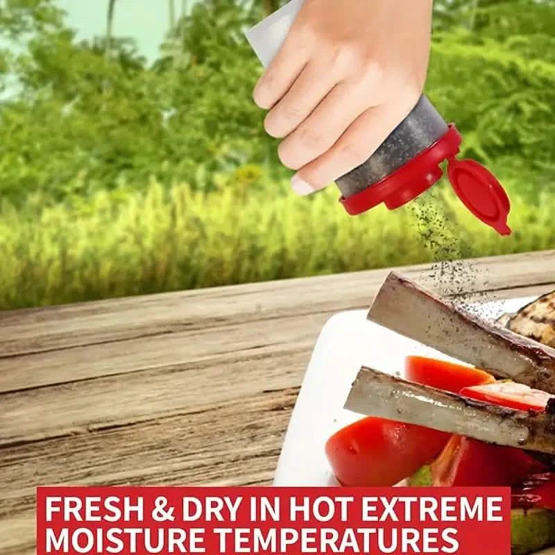Entwickelt für Komfort und Benutzerfreundlichkeit, besitzt jeder Streuer eine großzügige Kapazität, sodass Sie ausreichend Gewürze für Outdoor-Abenteuer, hektische Arbeitstage oder entspannende Picknicks am Wochenende zur Verfügung haben. Die feuchtigkeitsresistente Bauweise sorgt dafür, dass Ihr Salz, Pfeffer und andere Gewürze trocken bleiben und gut fließen, selbst bei nassen Bedingungen.