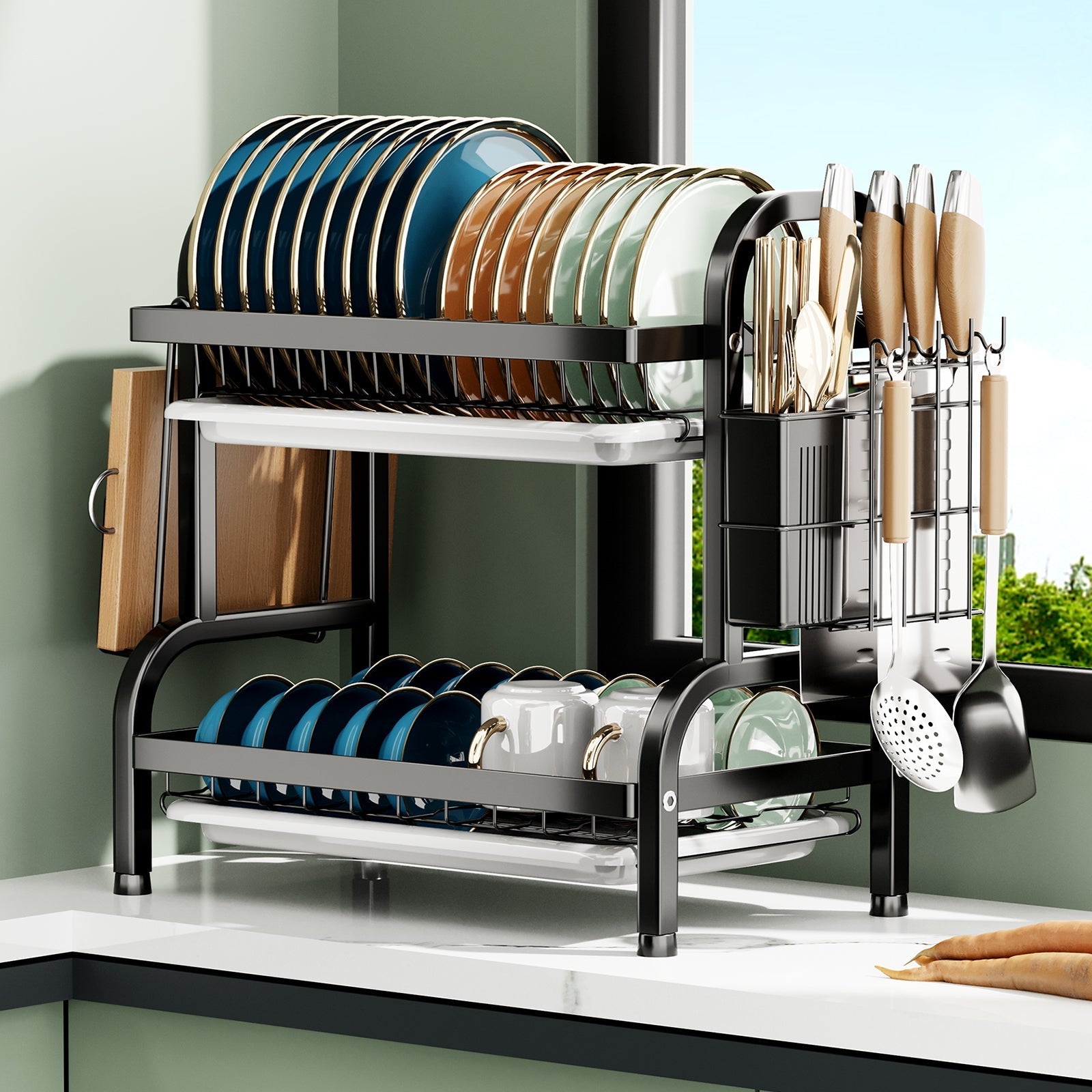 2-stufiges Geschirr-Trockengestell mit Abtropfbrett - Optimieren Sie Ihren Küchenraum