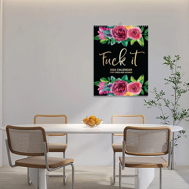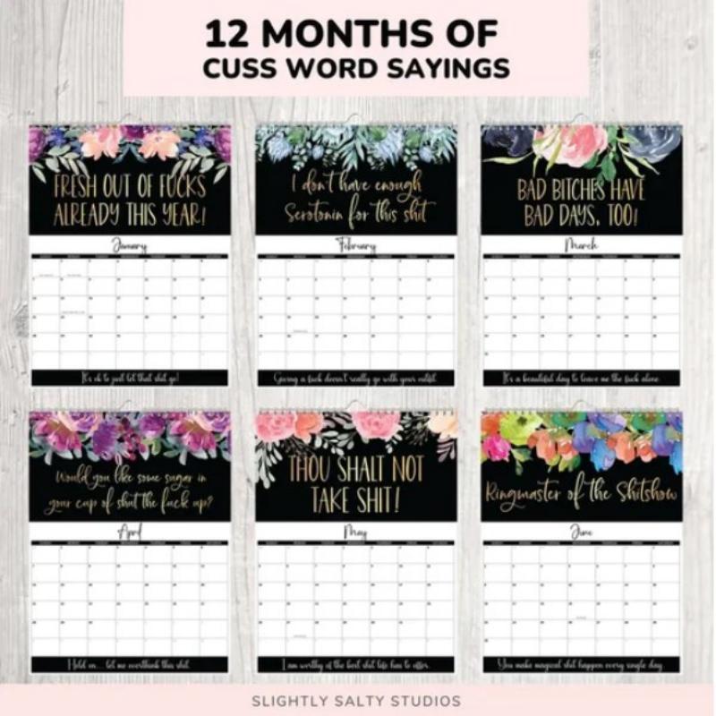 • 😇 Dieser Wandkalender 2024 bietet ZWEI humorvolle Fluch-Zitate pro Monat im Jahr 2024.