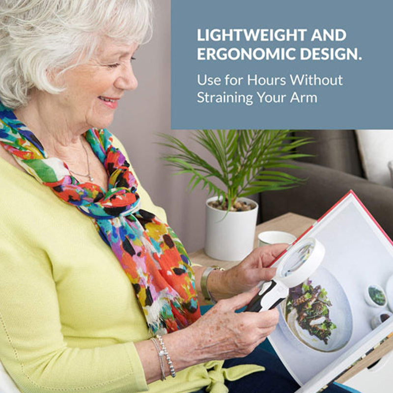 Die 20X Vergrößerungslupe eignet sich hervorragend zum Lesen von Zeitschriften, Büchern und sogar Produktetiketten! Sie werden die integrierten LED-Leuchten lieben, die Ihr Seherlebnis weiter optimieren.