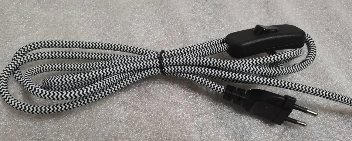 • 1 x 220V AC-Stromkabel mit europäischem Stecker und Schalter (klassisches Stofftextil-ummanteltes Flexkabel)