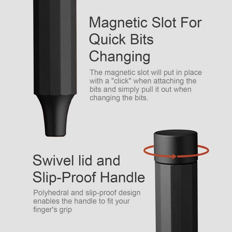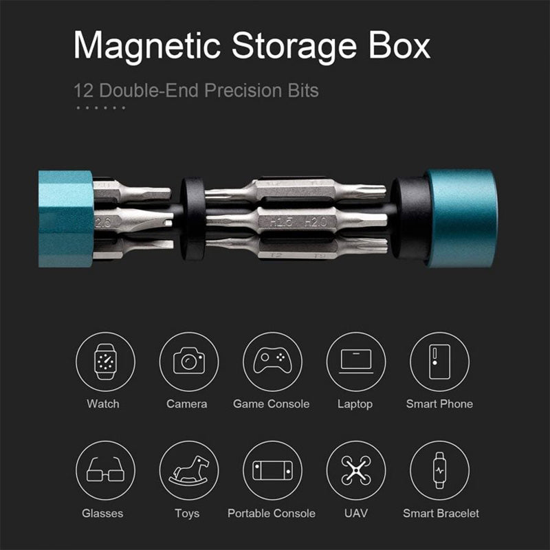 • 24-in-1 Vielseitigkeit: Beinhaltet 24 Bits in den gebräuchlichsten Größen, ideal für präzise Arbeiten an Elektronik, Brillen, Uhrenarmbändern und mehr.