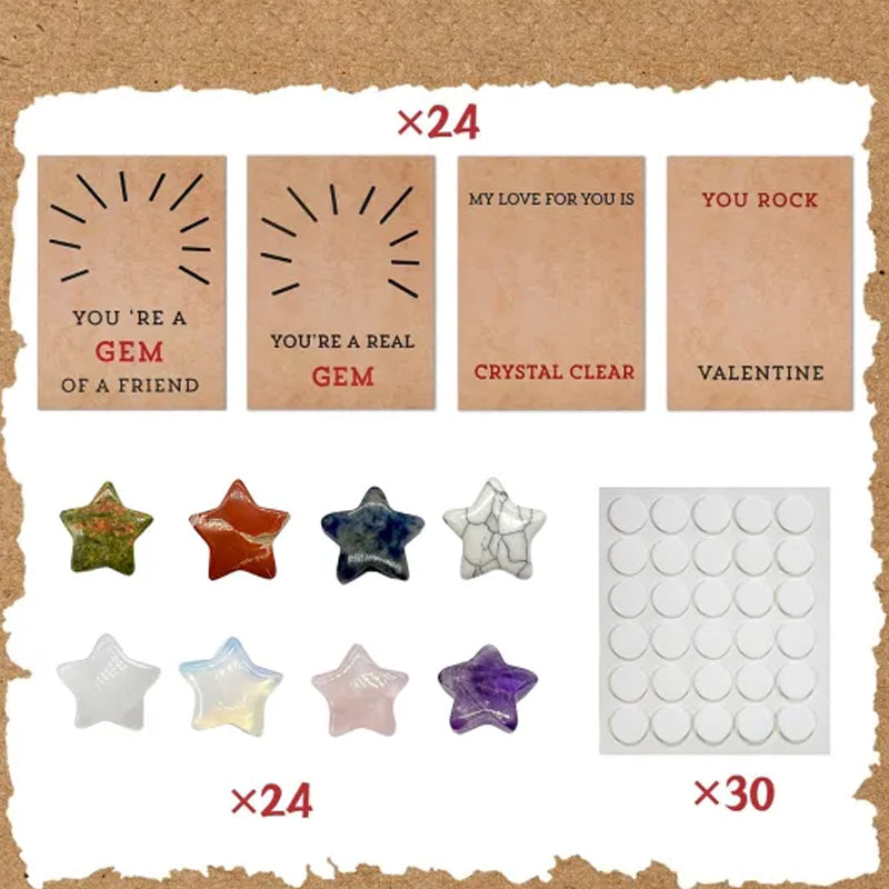 Frendorf | 24 Stück Valentinstagskarten mit sternförmigen Kristallen