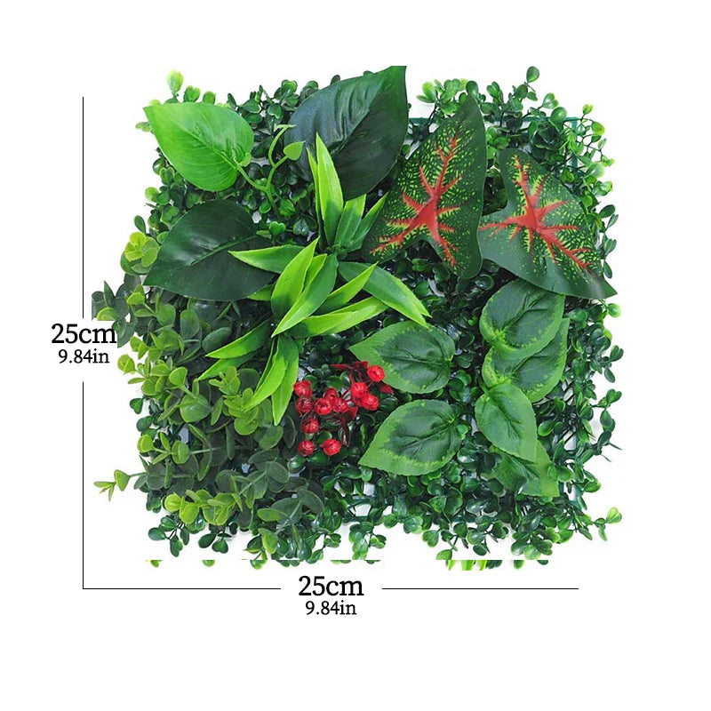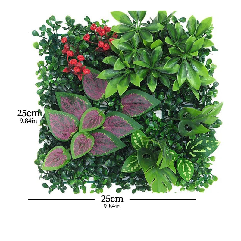 • Anpassungsfähig: Mehrere Panels können kombiniert werden, um eine größere grüne Wand zu kreieren, oder sie können bei Bedarf für kleinere Bereiche zugeschnitten werden.