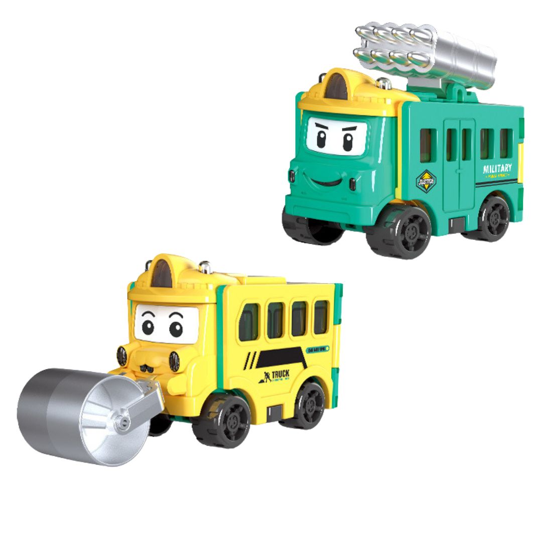 Genieße doppelten Spielspaß mit diesen außergewöhnlichen 2in1 Verwandlungs-Spielautos! Jedes Fahrzeug kann durch einfaches Umklappen in ein anderes Auto verwandelt werden, was es den Kleinen ermöglicht, ihrer Kreativität freien Lauf zu lassen und aufregende Abenteuer zu bestehen. Ob Feuerwehr, Bagger oder Militärfahrzeug – mit diesen Spielautos ist jede Mission machbar!
