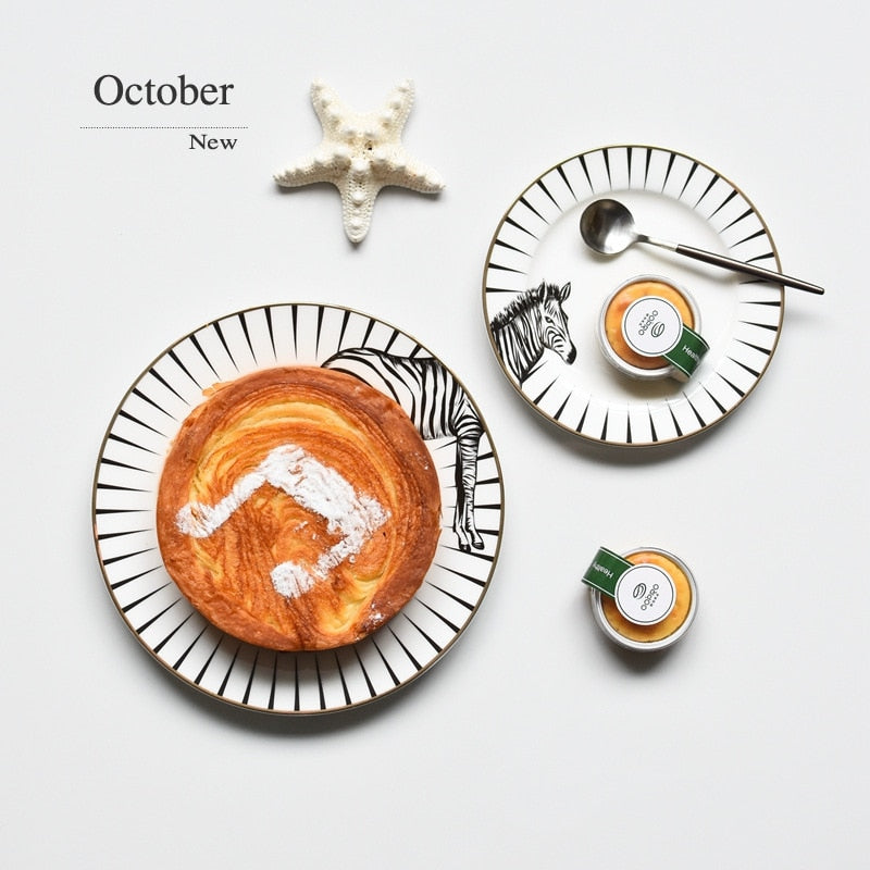 1*2er Set 8-Zoll Tierkombinierte Teller Keramikteller Musterteller