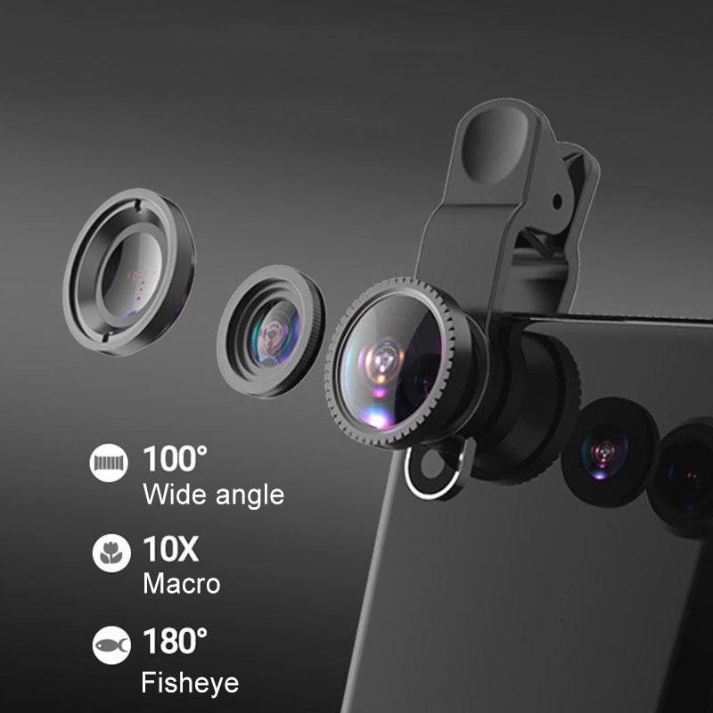 • Das Fisheye-Objektiv bietet Ihnen ein weites, halbkugelförmiges Sichtfeld. Das Makroobjektiv ist ideal für extreme Nahaufnahmen von kleinen Objekten im Detail. Das Weitwinkelobjektiv fängt einen deutlich größeren Bereich ein, wie Gruppen von Menschen, Gebäude und Landschaften. Erleben Sie eine atemberaubende Welt!