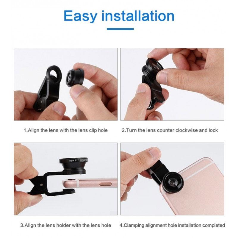 • Verpackung: 1*Universales 3 in 1 Clip-On 180 Grad Fisheye-Objektiv