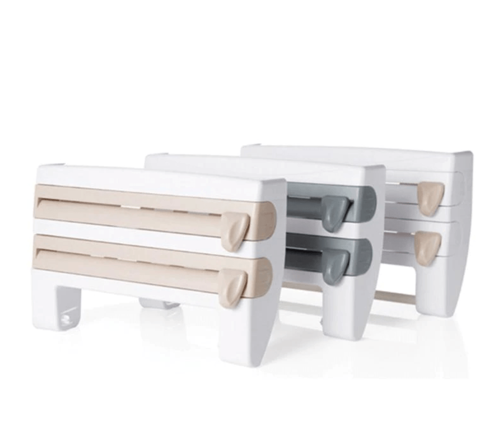 Wenn Sie eine stets aufgeräumte Küche wünschen, ist dieser 4-in-1 Küchenfolienspender genau das, was Sie brauchen. Dieses praktische Gerät organisiert Ihre Folien, Plastiktüten und Papiere an einem Ort und bietet zusätzlich ein kleines Regal für Ihre Gewürze und mehr. Die Tasten des Spenders sind mit einer geschickten Klinge ausgestattet, die direkt durch die Folie schneidet. Einfach zu installieren und intuitiv zu benutzen. Dieses stilvolle und sichere Gerät sorgt dafür, dass Ihre Küche ordentlich und griffbereit bleibt.