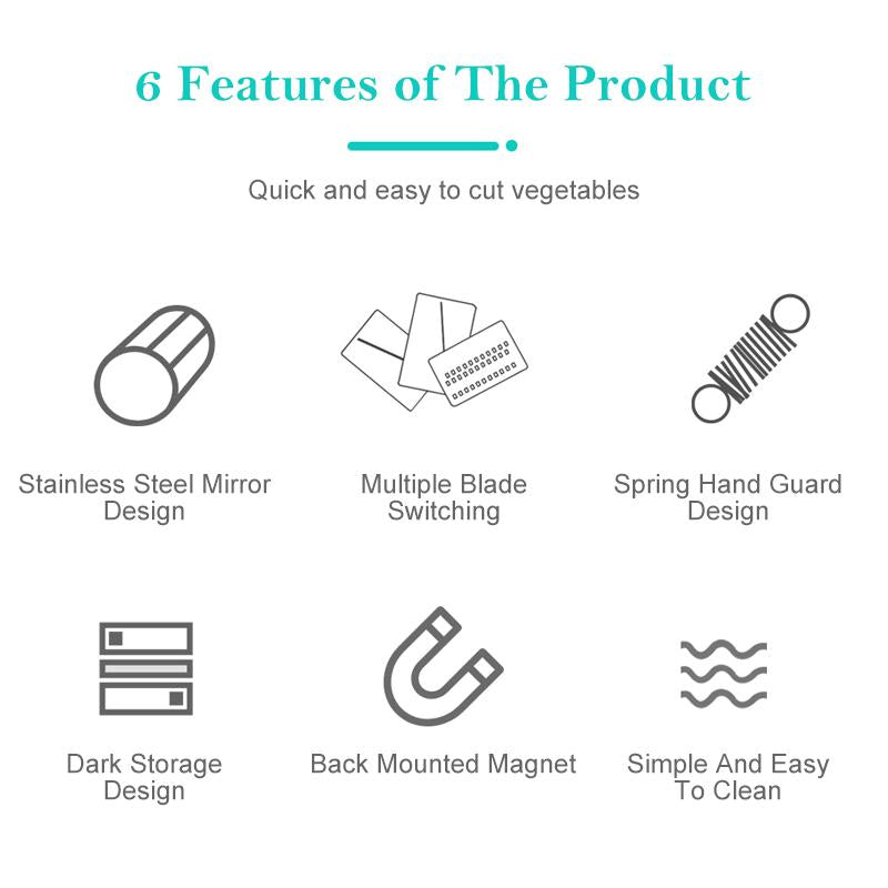 Hergestellt aus BPA-freiem ABS und einer Oberfläche aus 304-Edelstahl, der schimmelresistent und korrosionsbeständig ist, sorgt es dafür, dass Ihr Essen einen unverfälschten Geschmack behält. Die Klinge aus solidem Edelstahl ist sehr scharf und erleichtert das Schneiden erheblich.