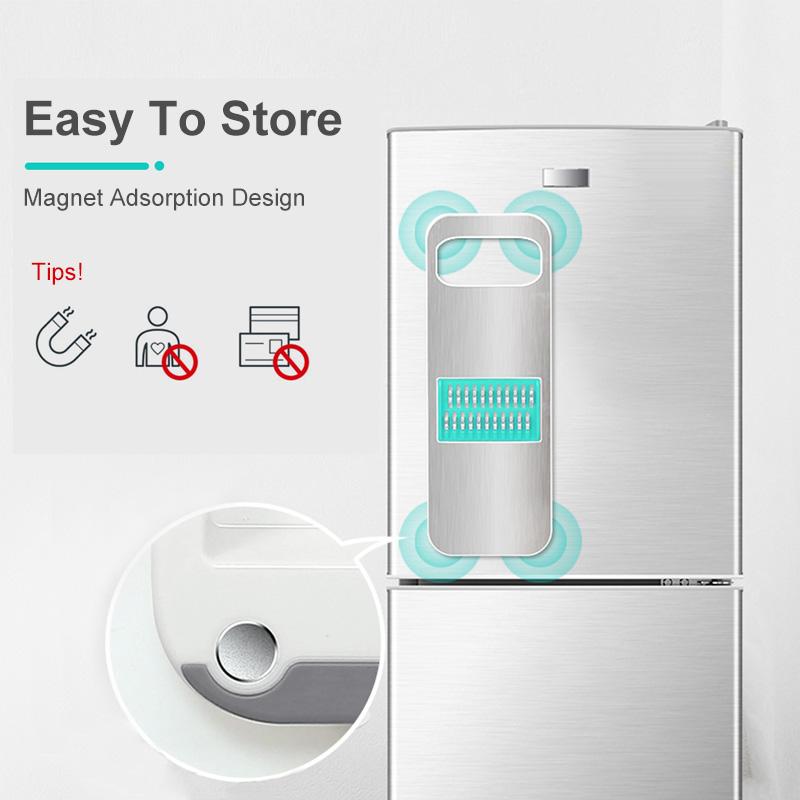 Dank des Rückmagnetdesigns haftet es an Eisenoberflächen wie Kühlschranktüren, während die Rückklingenkarte die Klinge sicher aufbewahren kann oder Sie sie in der Aufbewahrungsbox verstauen, um alle Teile ordentlich zu halten.