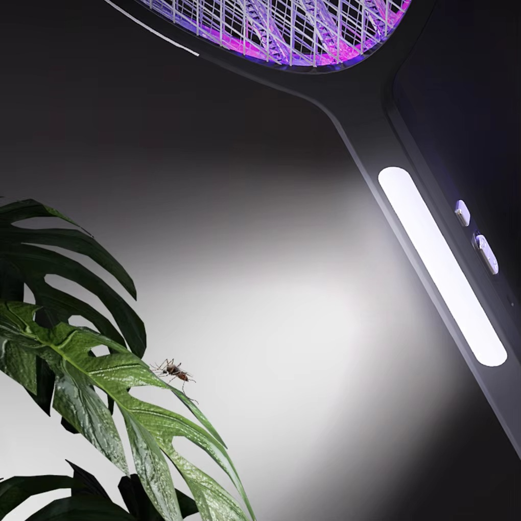 Dieses vielseitige Gerät agiert als tragbare Einheit, stehender Racket und als wandmontierter Insektenvernichter. Es wurde entwickelt, um Ihr Zuhause rund um die Uhr – sowohl innen als auch außen – schädlingsfrei zu halten.