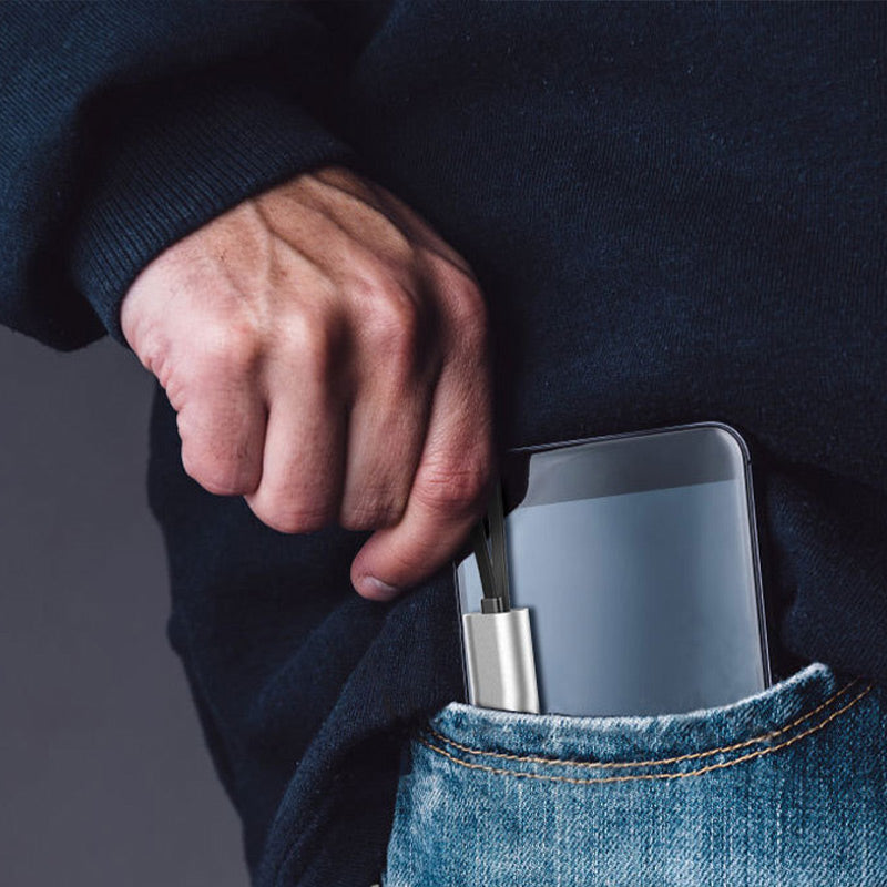 EINZIEHBARER DESIGN: Verabschieden Sie sich von Kabelsalat dank der einziehbaren Funktion dieses Ladekabels. Sie können die Kabellänge nach Ihren Wünschen anpassen.