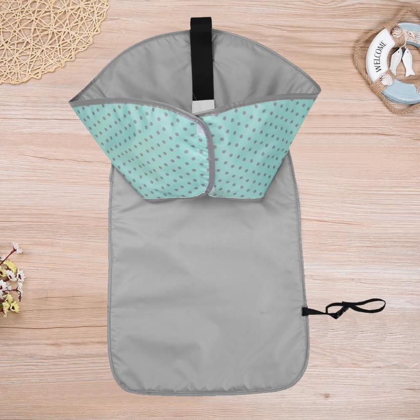 • Zusammenfaltbar. Das ist wirklich praktisch. Diese Wickelunterlage lässt sich zu einer Clutch-Tasche zusammenfalten, was das Mitnehmen extrem unkompliziert macht.