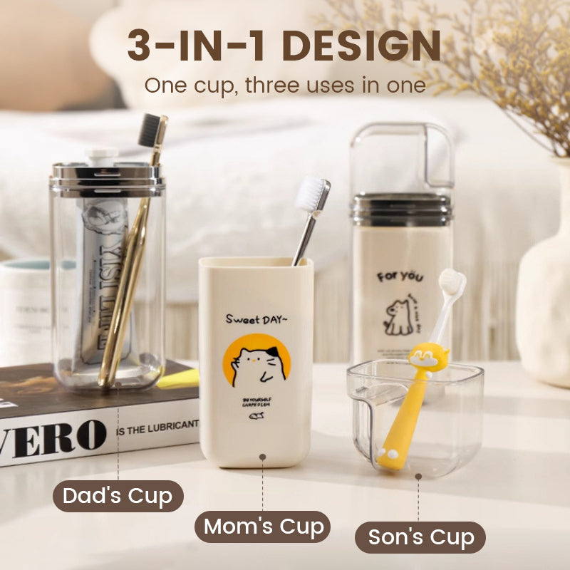 3-IN-1 MULTIFUNKTIONELLES DESIGN - 3-in-1 multifunktionales Design - Wandelt sich in drei separate Tassen um, ideal für die persönlichen Hygienebedürfnisse von drei Personen, und erfüllt vollständig Ihre täglichen Reisehygienebedürfnisse.