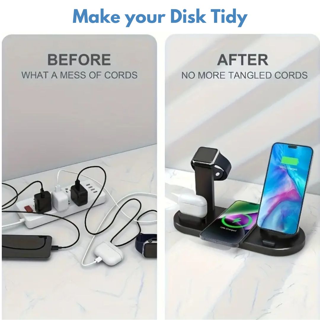 Sind Sie es leid, von Kabelsalat und einer Menge Ladegeräte umgeben zu sein? Der 3-in-1 Drahtlos-Ladestand ist die perfekte Lösung, um Ihr Smartphone, Ihre Smartwatch und Ihre Ohrhörer gleichzeitig aufzuladen. Halten Sie Ihren Schreibtisch, Nachttisch oder Arbeitsplatz ordentlich, strukturiert und effizient mit diesem eleganten und leistungsstarken Ladegerät.