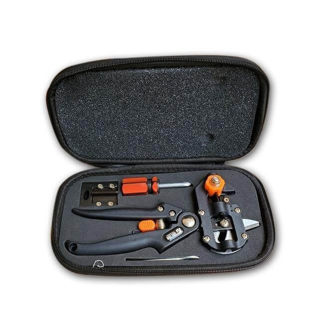 • Schneiden, Verbinden, Binden und Veredeln vollständig. Sie müssen kein Messer verwenden, um die gleiche Neigung an beiden Ästen wie früher auf die mühsame Weise zu schaben.