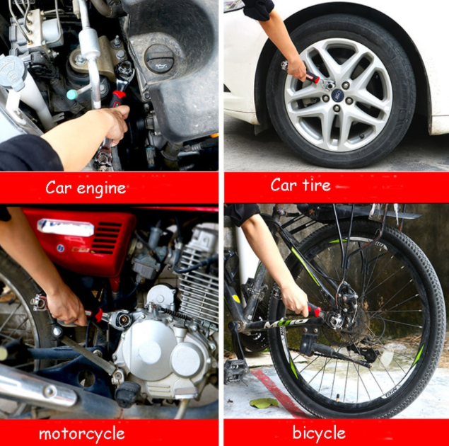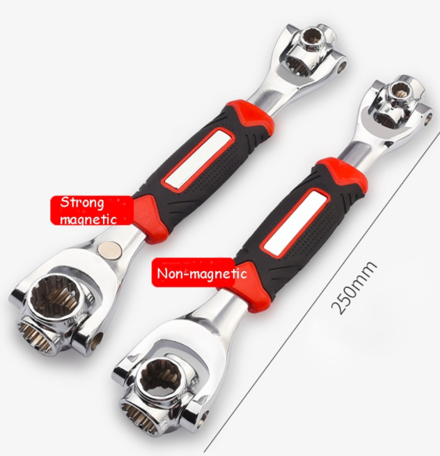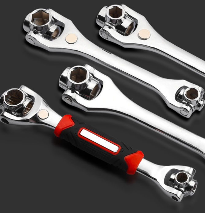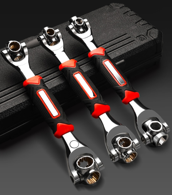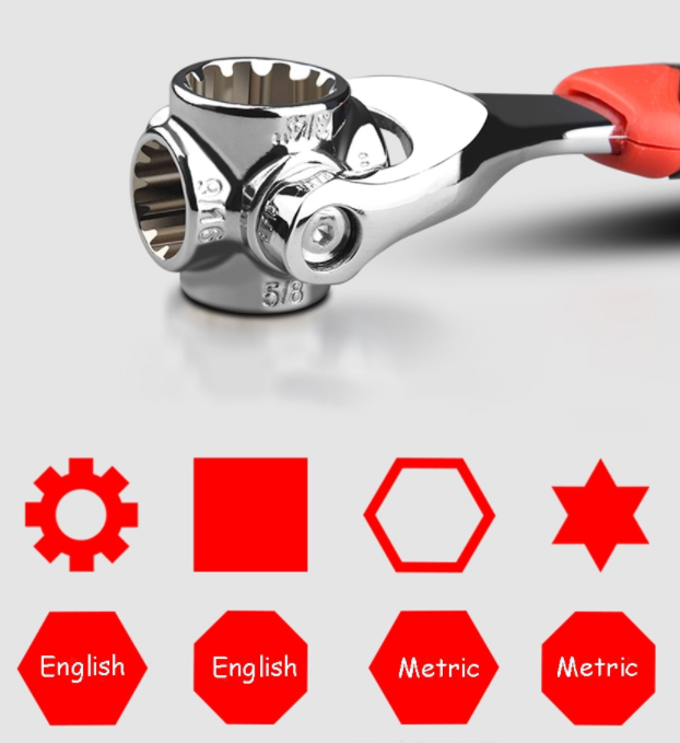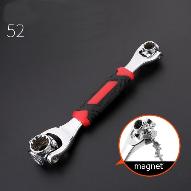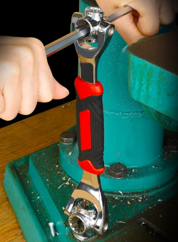 Dieser einzigartig gestaltete Schraubenschlüssel kombiniert 52 Werkzeuge in einem leistungsstarken Schraubenschlüssel für die Autoreparatur und macht jede Reparatur schnell und einfach. Klicken Sie einfach zwischen verschiedenen Größen, um die Werkzeuge zu erhalten, die Sie für Ihren Job benötigen.