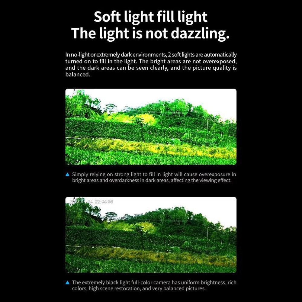 • Farbenfrohe Nachtsicht: Diese Außen-Solarüberwachungskamera ist mit einer großen F1.0 Blende, einem 1/2.8 Zoll Sensor, sanfter Füllbeleuchtung und moderner ISP-Bildgebungstechnologie ausgestattet. Sie liefert lebendige Farbbilder, selbst bei Dunkelheit. Genießen Sie eine realistischere und präzisere Darstellung ohne die Einschränkungen von Schwarzweißbildern.