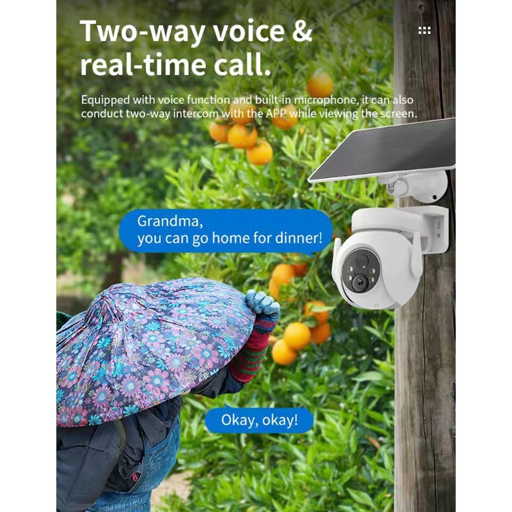 • IP66 wetterfest und Dual-Stromversorgungsmodus: Diese Kamera ist für den Einsatz unter allen Wetterbedingungen mit einer IP66-Einstufung konzipiert. Die duale Stromversorgungsoption – entweder über das Solarpanel oder den integrierten 7800mAh Lithium-Akku – garantiert kontinuierliche Nutzung und eine volle Jahr Unabhängigkeit der Akkuleistung.