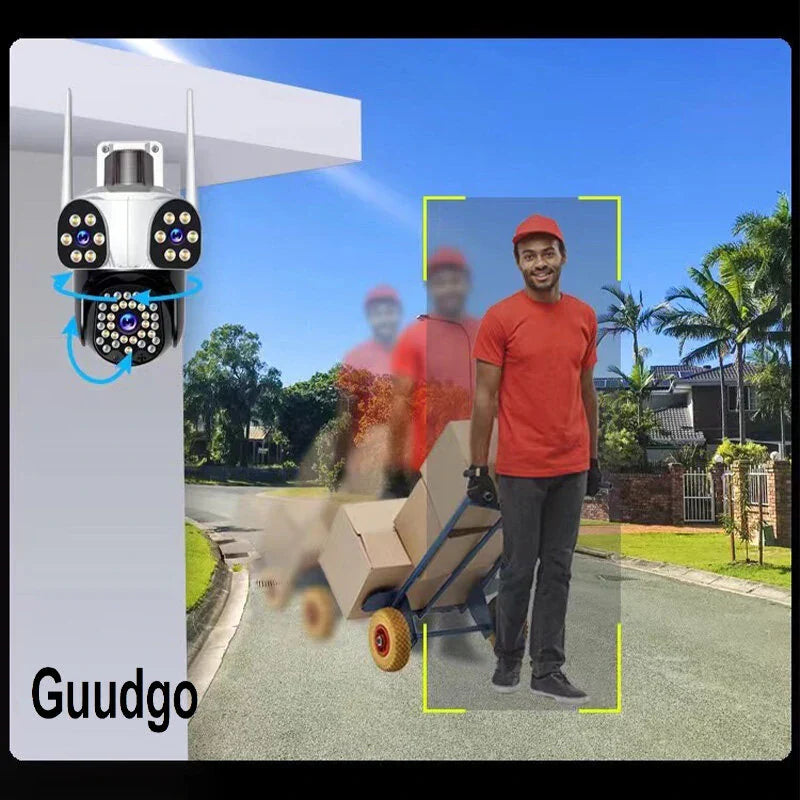 3MP Triple Outdoor WiFi Kameras - HD IP Überwachung mit Farb-Nachtsicht, Menschenerkennung, Gegensprechanlage, IP66 wasserdicht, 360° Panoramaansicht