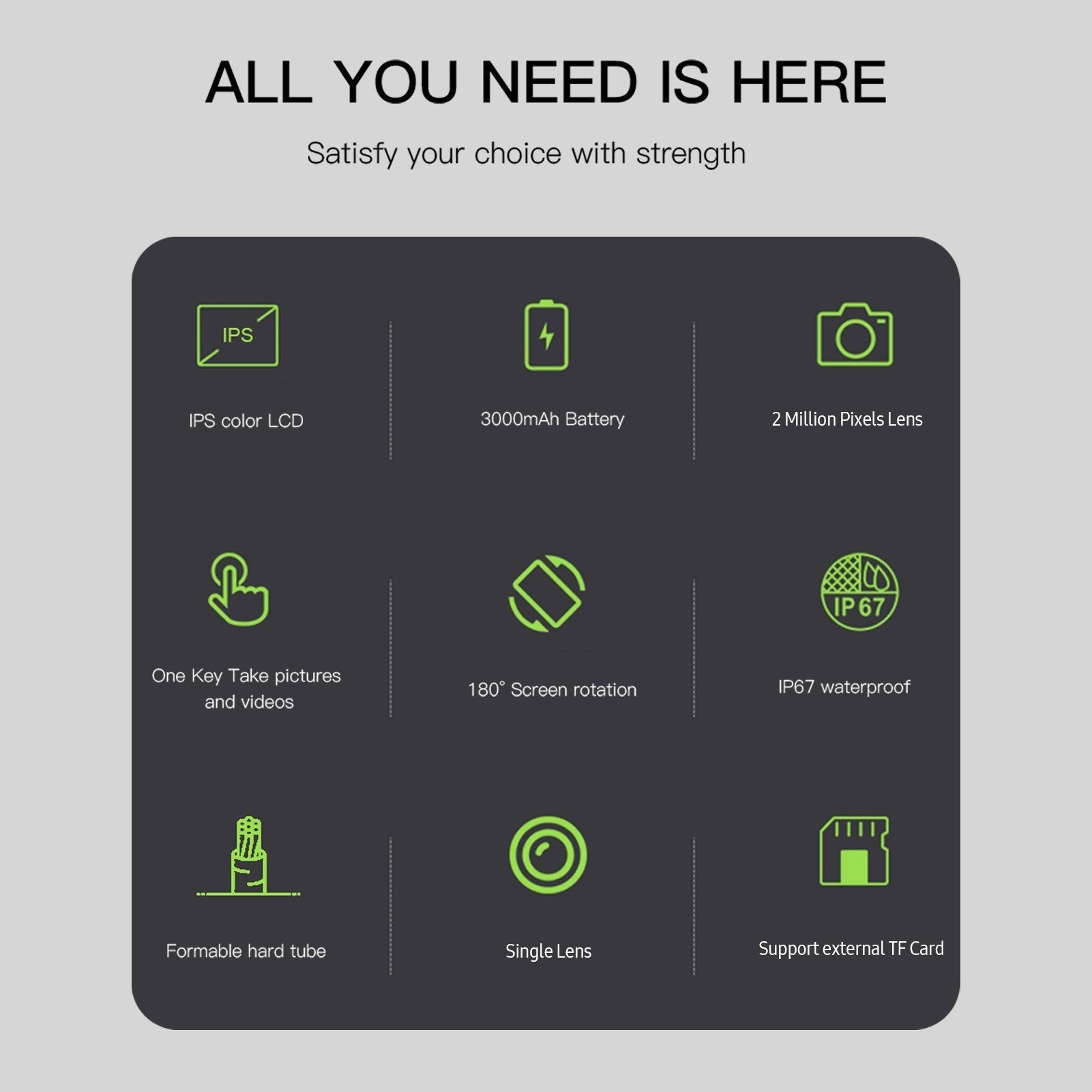• Vielseitige Anwendungsgebiete: Ideal für Autoinspektionen, mechanische Wartungsarbeiten, Rohrinspektionen, Überprüfungen von Haushaltsgeräten und vieles mehr.