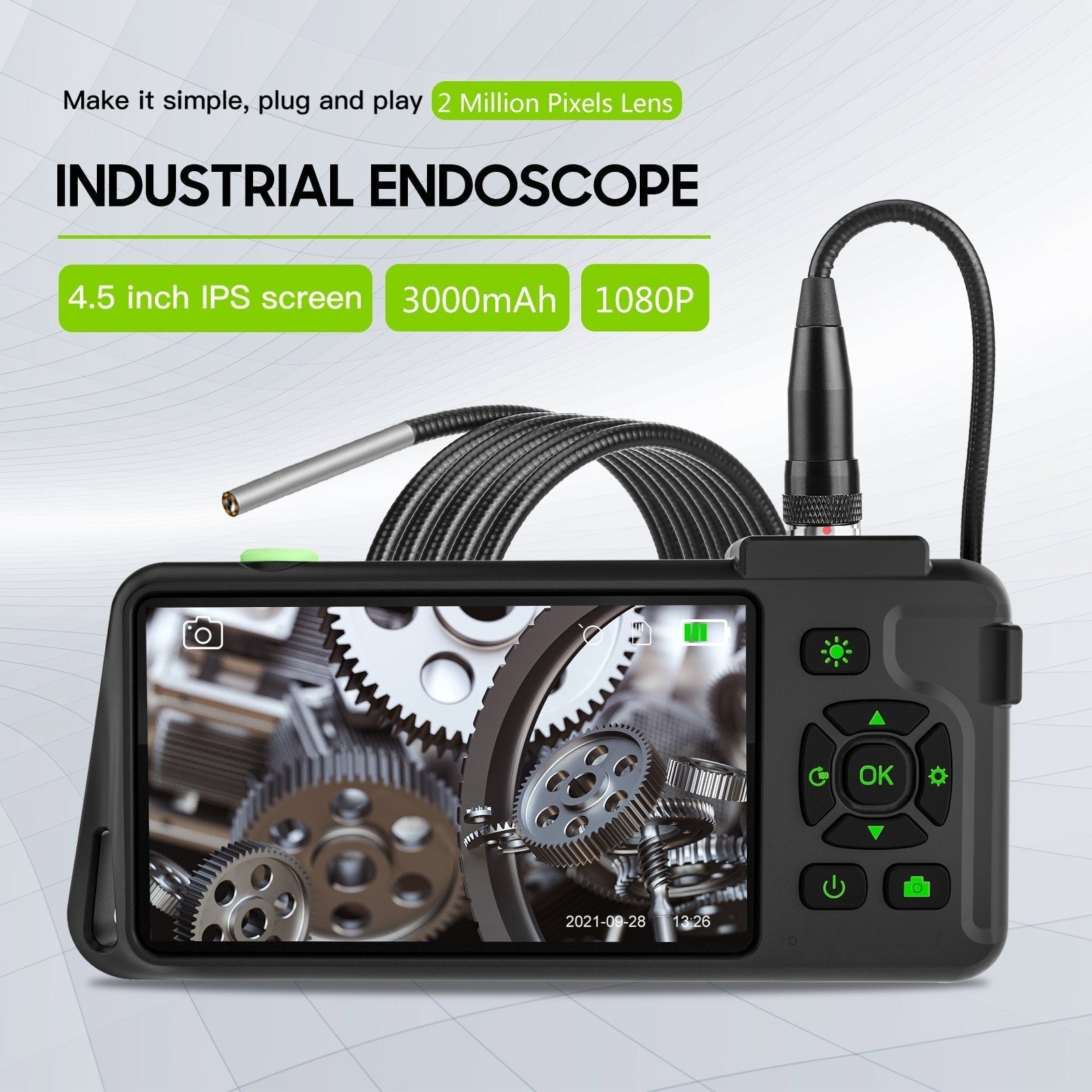 4,5-Zoll IPS Industrie-Endoskop, 1080P HD Borescope Kamera mit 6 LEDs, IP67 wasserdicht, TF-Kartensteckplatz