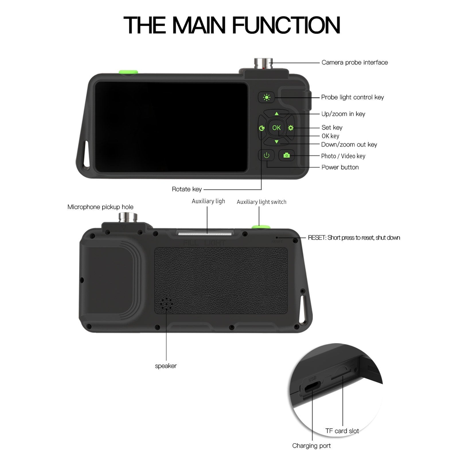 • Endoskop-Host-Größe: 18x8.5x2.8cm / 7.09x3.35x1.10in