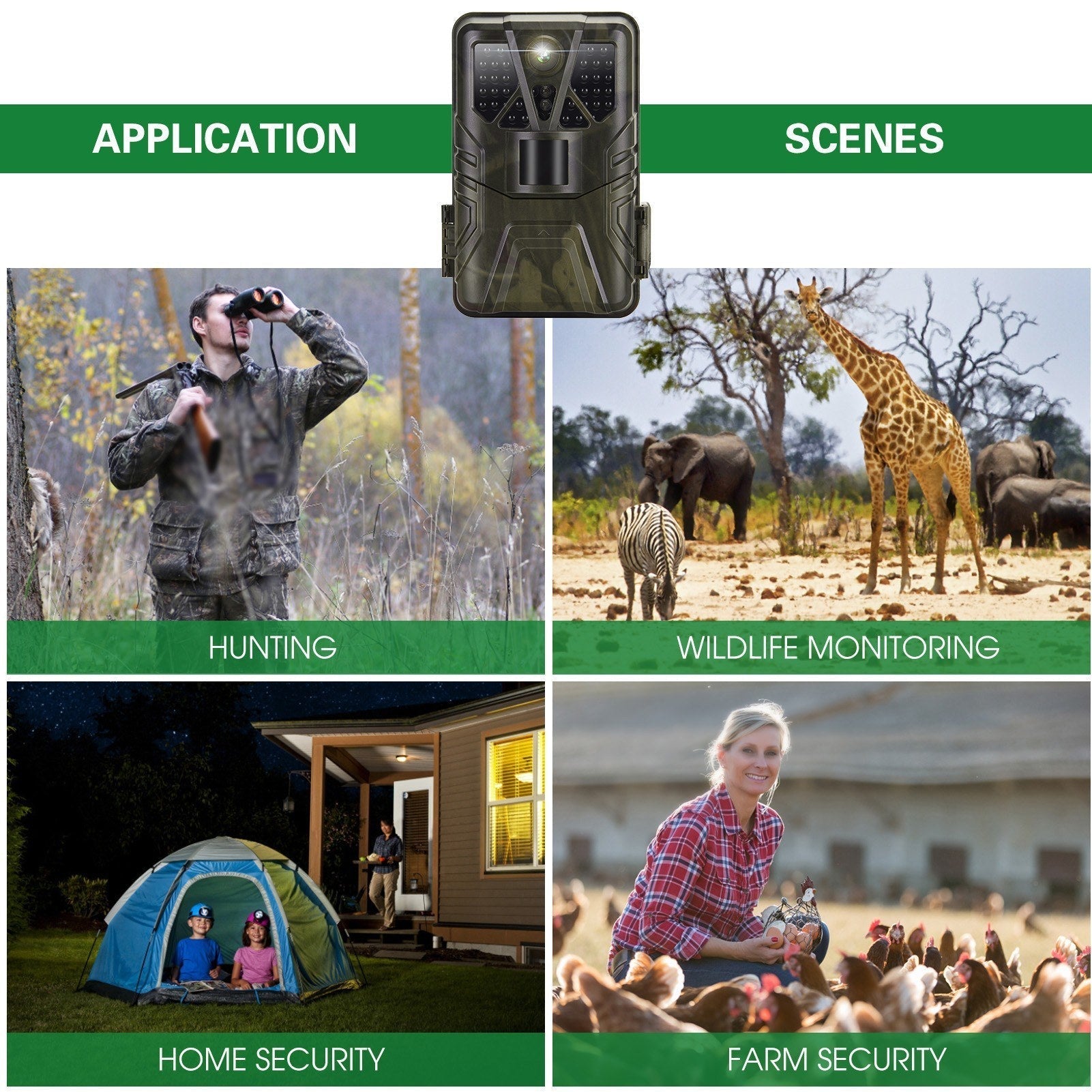 • Strapazierfähiges IP65 wetterfestes Design, ideal für unterschiedliche Anwendungen, einschließlich Jagd, Tierbeobachtung, Haussicherheit und mehr.